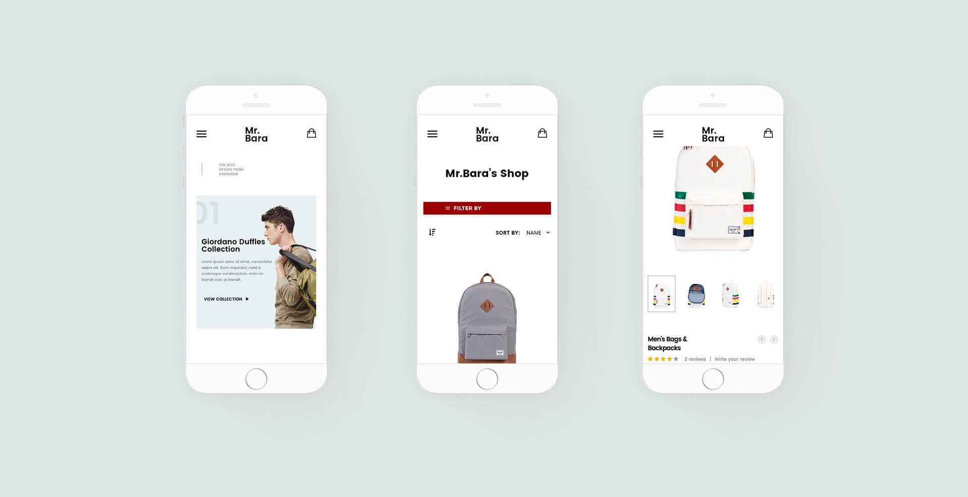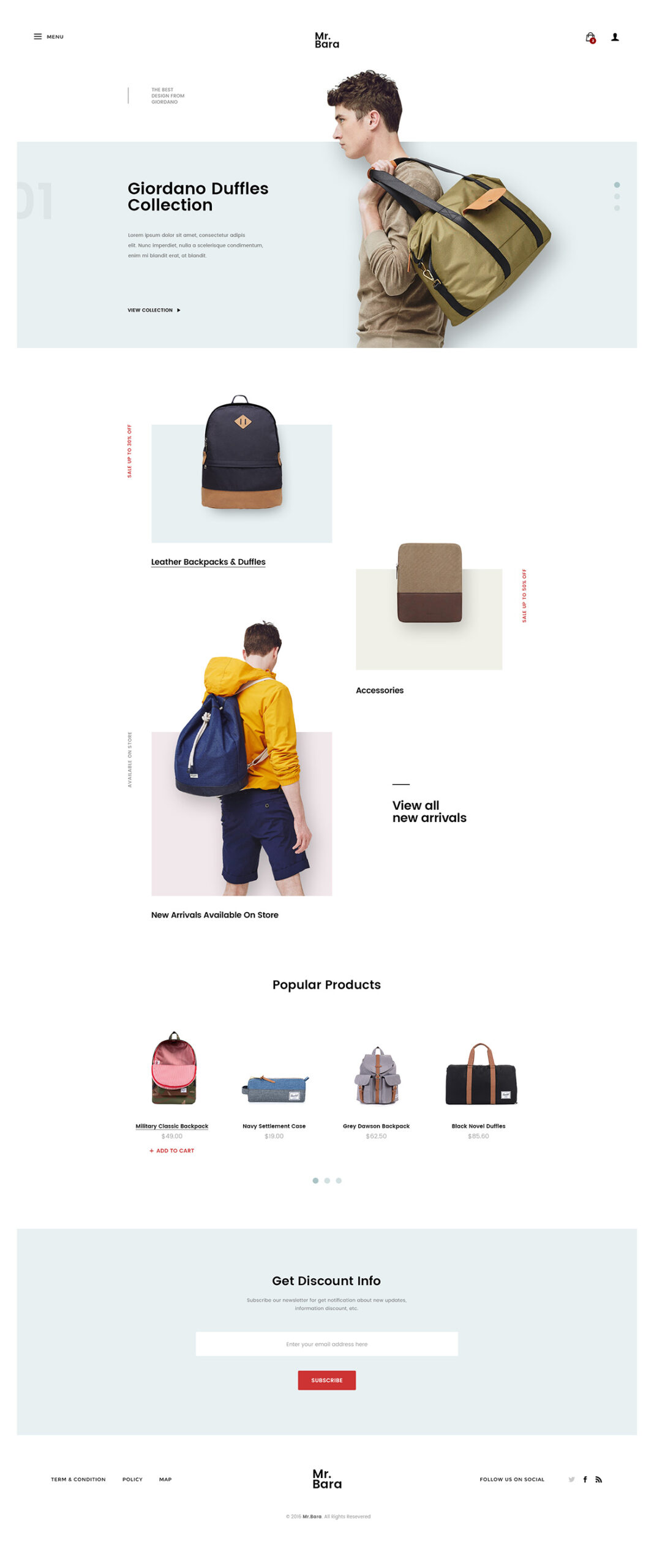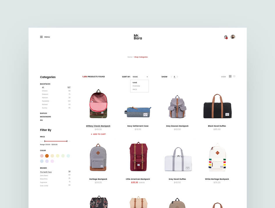Bara is a backpack online store based on