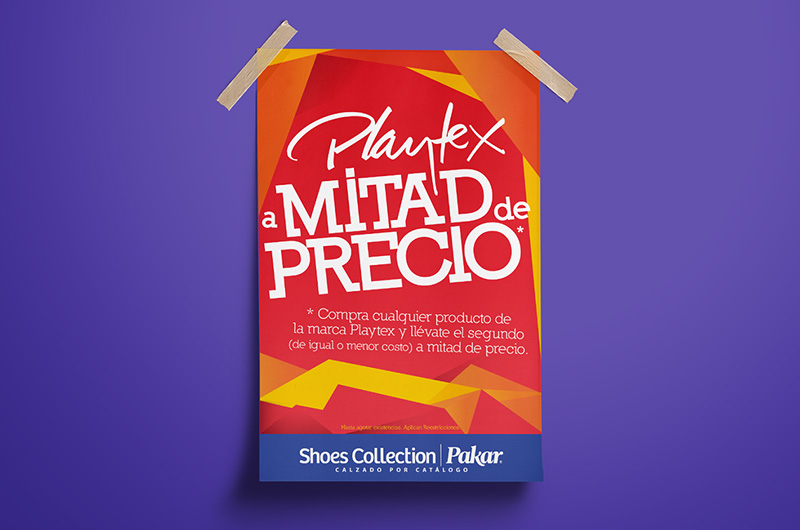 Shoes Collection Pakar is a mexican retail company, selling footwear and clothing by catalog. Every season they release a set of catalogs for all their main audiences. For this project, a new logo was designed, reflecting the colorful and geometric art direction that was established for the season. Also some print ads were made, along with the catalog layout.